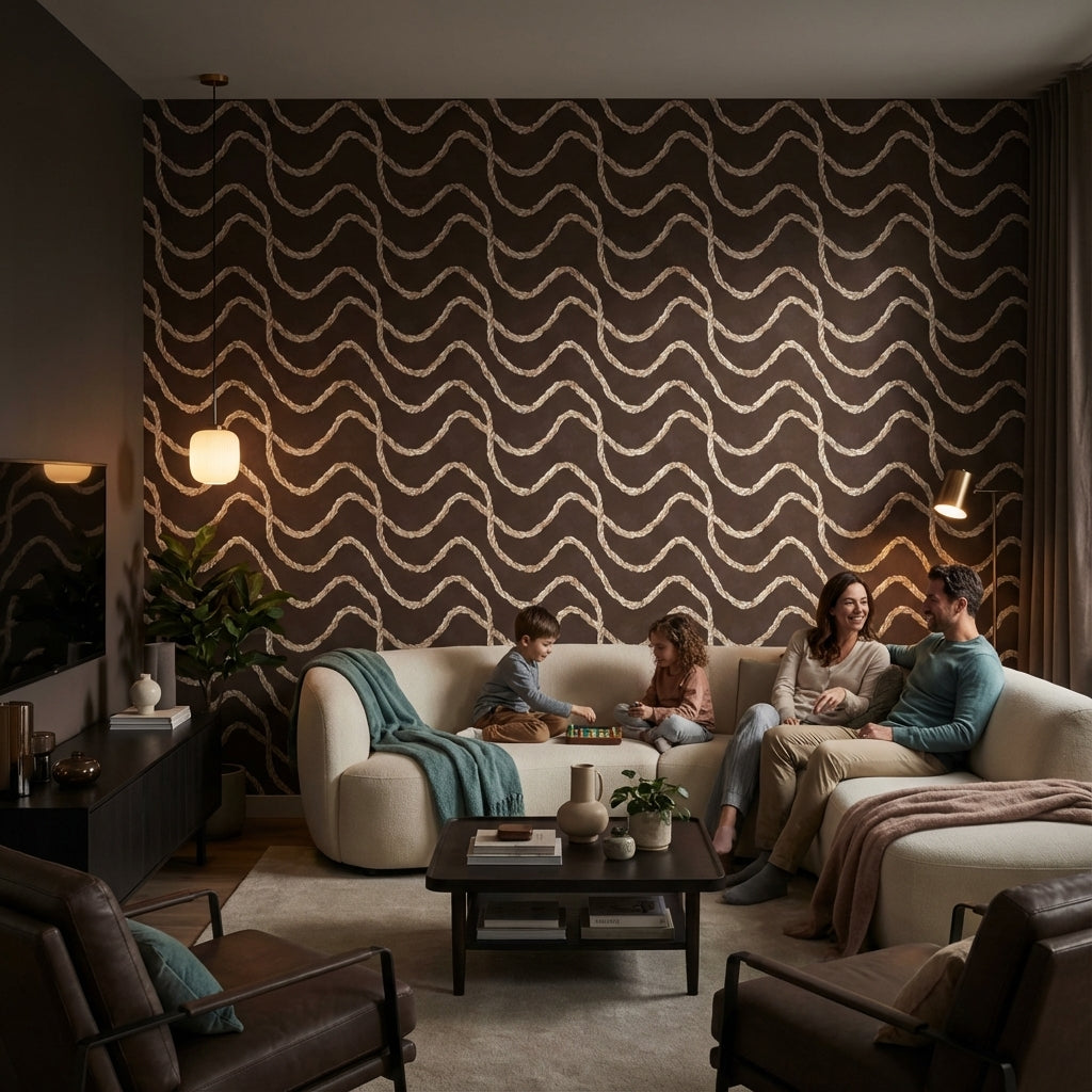 While the Dark Chocolate Brown Braided Rope Abstract Wallpaper is designed primarily for living rooms and home offices, its non-toxic materials ensure it's safe for use in any room, including spaces accessible to children.