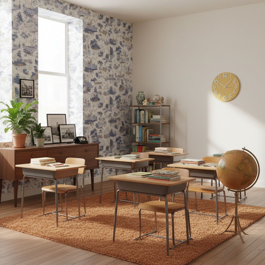 Is the Cream and Blue Vintage Landscape Wallpaper safe for use in children's rooms?