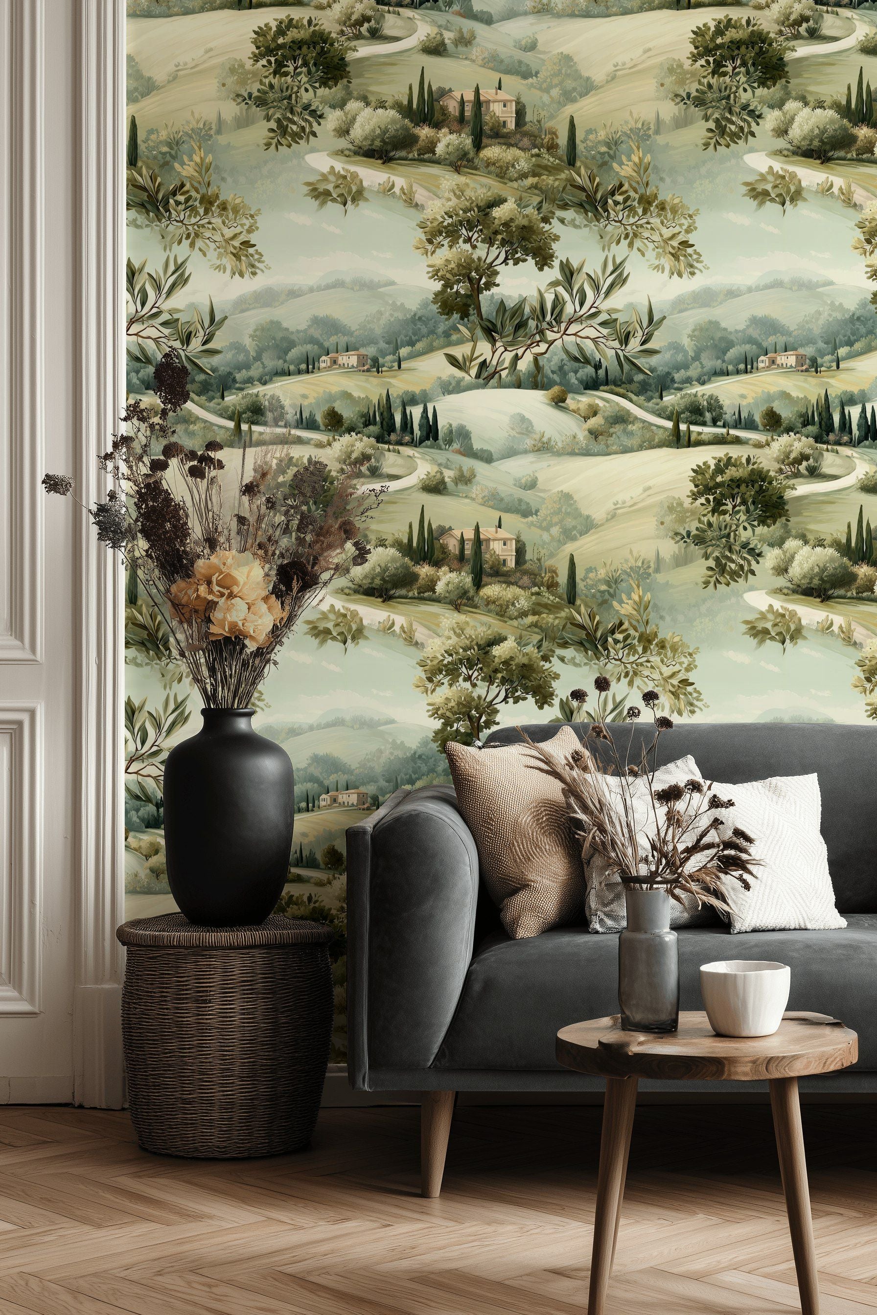 Tuscan Landscape Wallpaper Scenic Mural Countryside Wall Decor