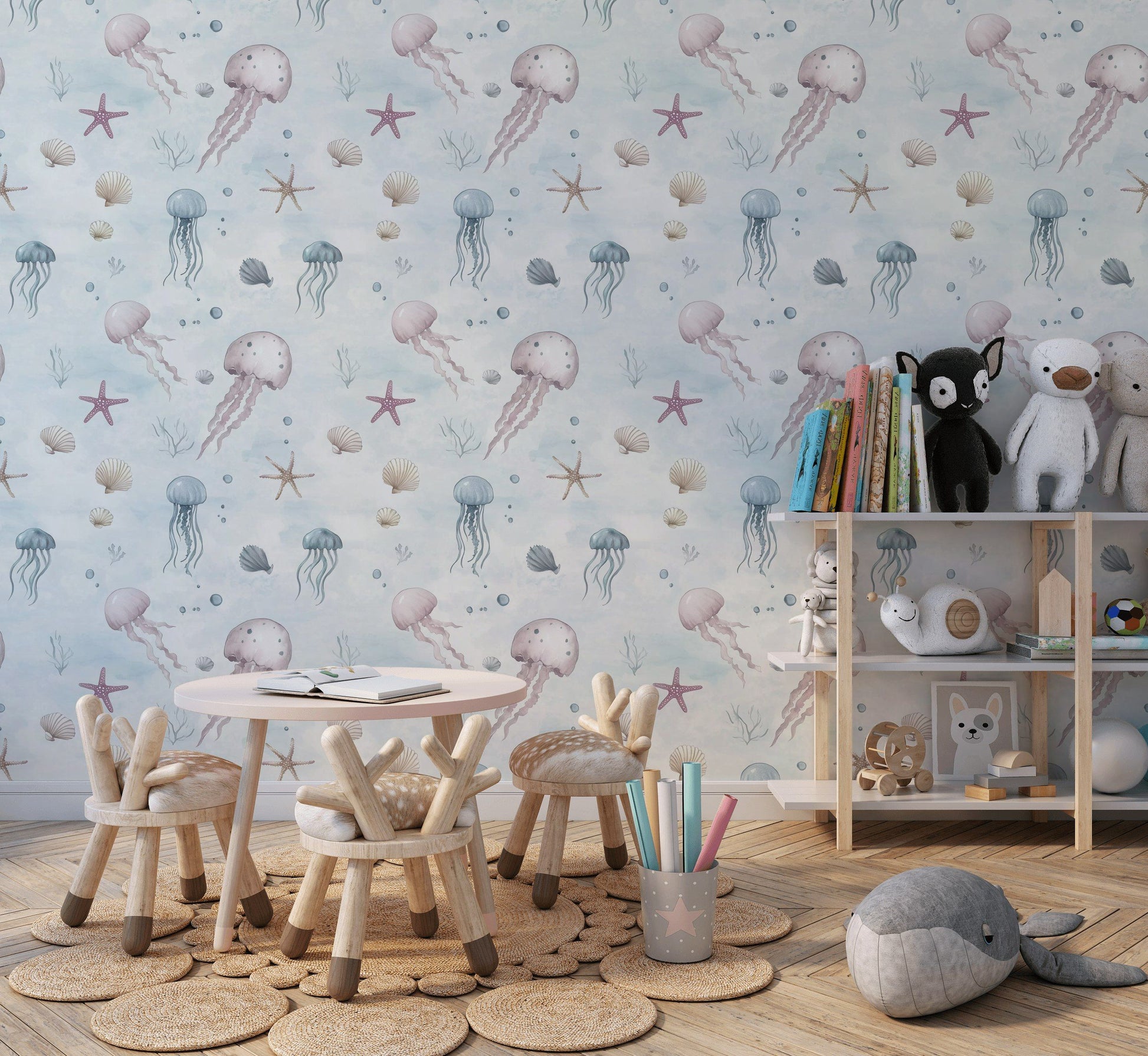 Undersea Jellyfish Wallpaper Pastel Ocean Nursery Decor