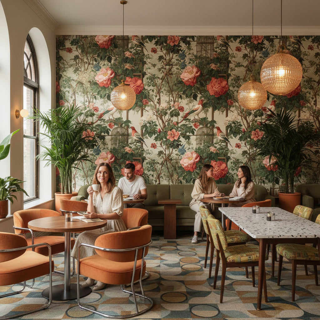 The medium pattern density of this wallpaper ensures it remains visually striking without overwhelming smaller spaces like a home office. It balances elegance with a lively feel, creating an inspiring yet soothing environment for work.