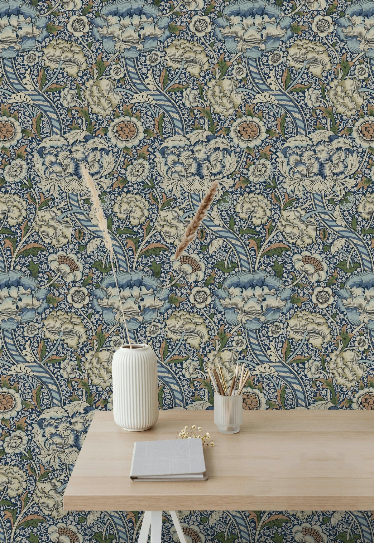 Vintage Floral Wallpaper Blue Cream Botanical Wall Mural - Complete Product Information
