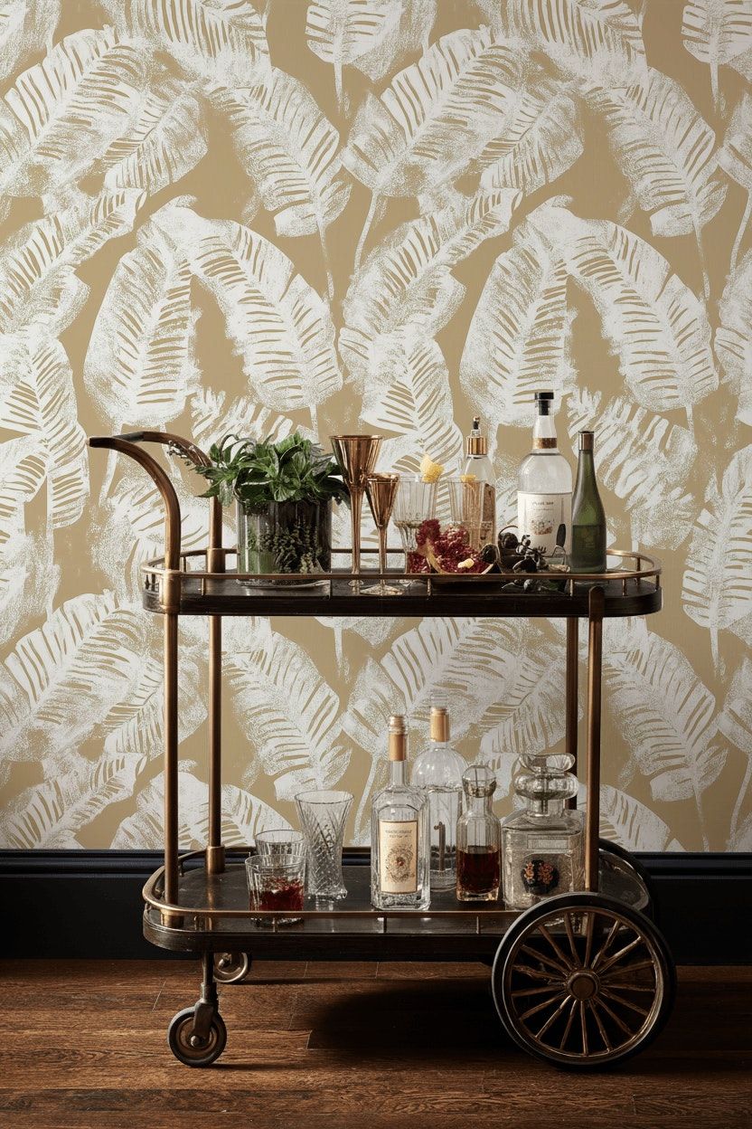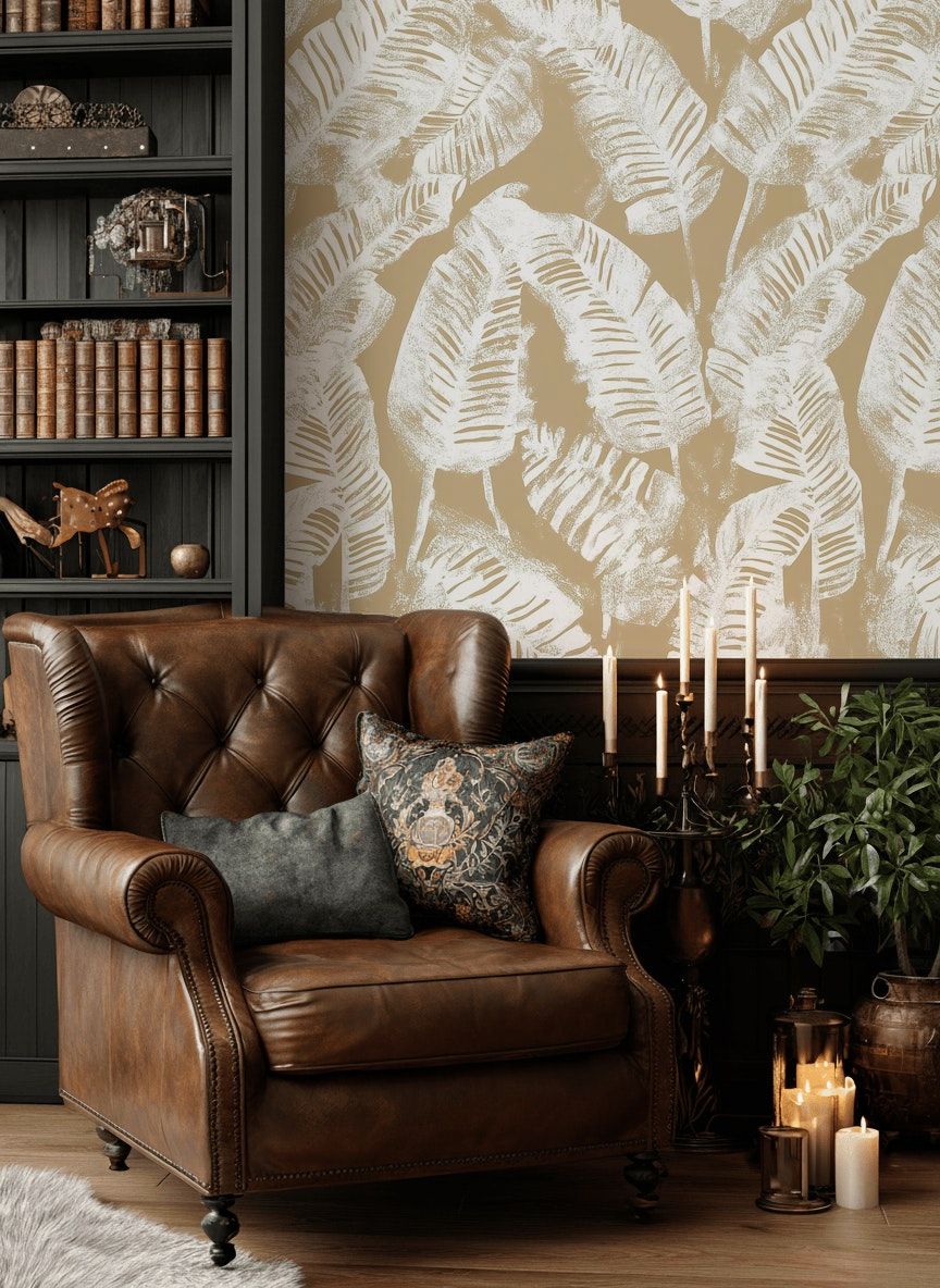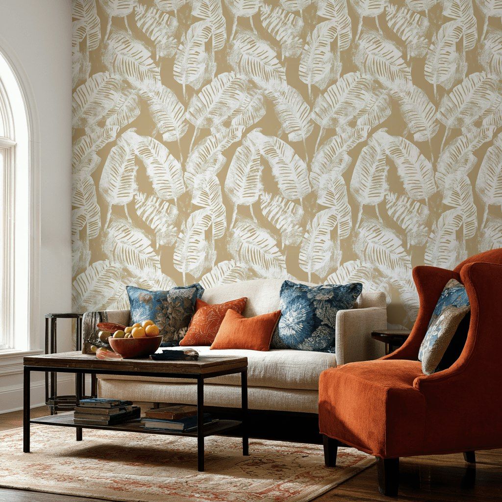This tropical wallpaper features oversized banana leaf motifs in white set against a beige backdrop, bringing a bold tropical feel. Designed with a hand-painted effect, the mural includes layered leaf patterns for added depth and character. The removable design makes it easy to create a botanical accent wall, whether styled as a palm leaf wallpaper, banana leaf mural, or bold tropical decor. Its neutral tones work beautifully in both modern tropical walls and eclectic living spaces.