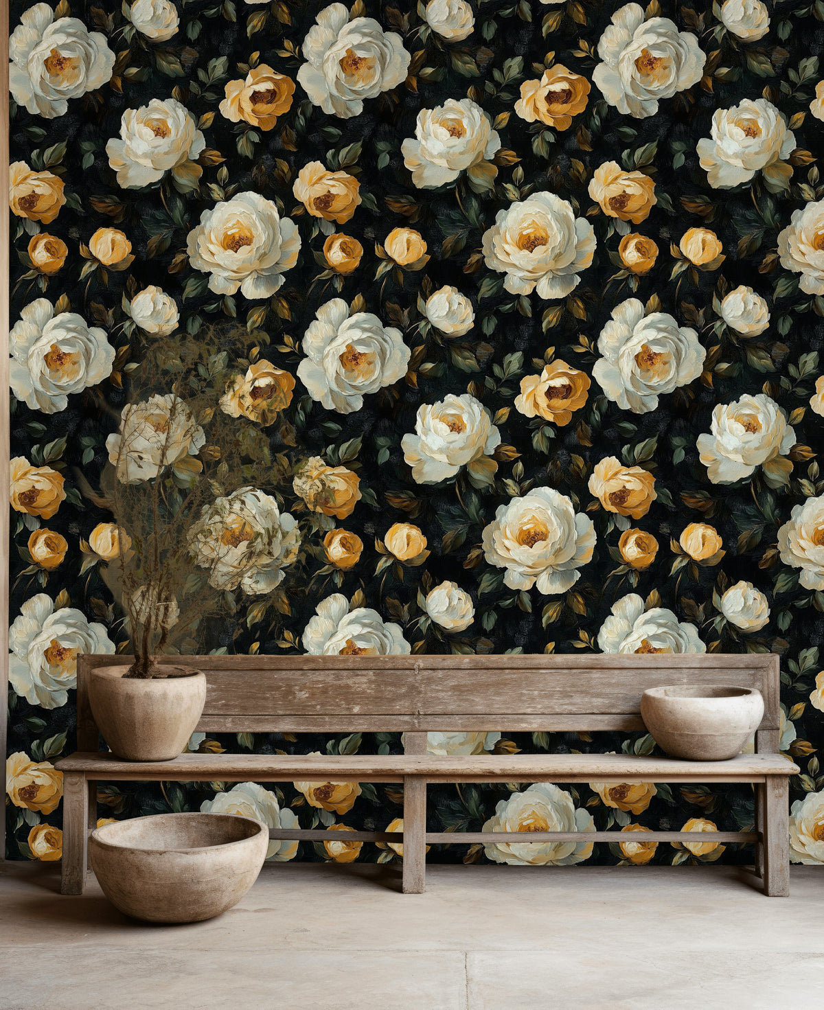 Frequently Asked Questions about Dark Black and Yellow Rose Floral Wallpaper